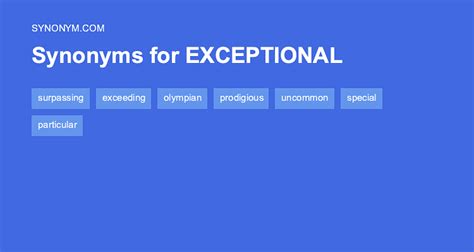 What is the opposite of exceptional? Find words and phrases that mean good or important because of unusual qualities, such as special, outstanding, extraordinary, or unique. Find 89 different ways to say exceptional, along with antonyms, related words, and example sentences at thesaurus.com.
