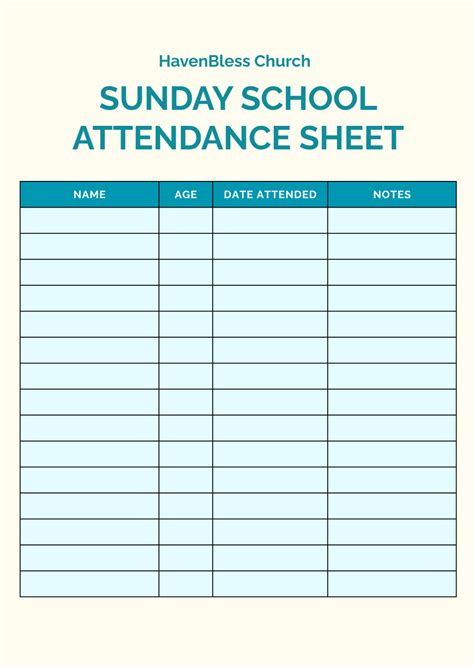 Sunday School Attendance Forms . See our digital collection of. Prepare for your next class in a sunday school with template.net’s editable sunday school word templates.